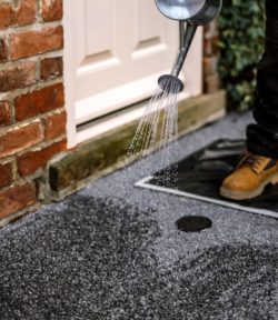 Arroser : Utiliser un arrosoir standard pour répartir le produit uniformément sur son paillage minéral et végétal.
