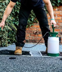 Pulvériser : Appliquer le produit avec un pulvérisateur airless directement sur vos graviers. Nettoyer le pulvérisateur à l’eau après utilisation pour éviter les obstructions.